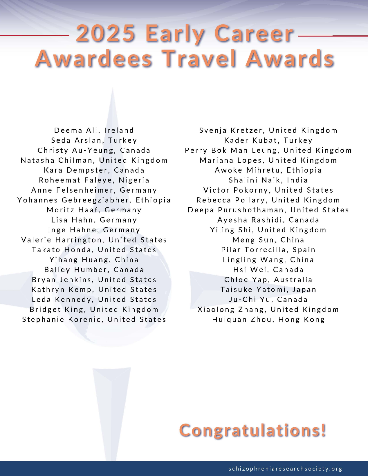 腾博会官网博士生黄逸航荣获2025年精神分裂症国际研究学会(SIRS)“早期职业奖”
